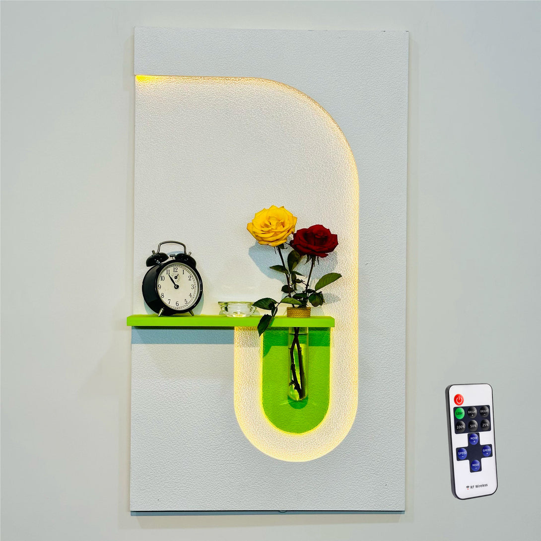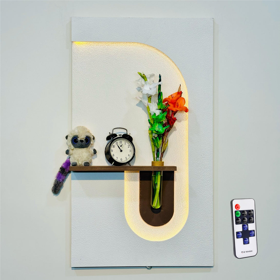 Elevate your living space with our Contemporary Wall Decor, a fusion of modern style and artistic flair. This sleek and sophisticated piece is crafted from high-quality MDF, ensuring durability and longevity. Its unique texture, achieved through a special frosted rock process, adds a touch of exclusivity to its appearance. Enhance your home's ambiance with the included remote-controlled LED lights, which can be powered by an electrical outlet , making it versatile for various settings. Complete the look with an included water bottle for your favorite greenery, adding a touch of nature to your decor. Perfect for any room, this wall decor is not just a piece of art but a statement of your taste and style.