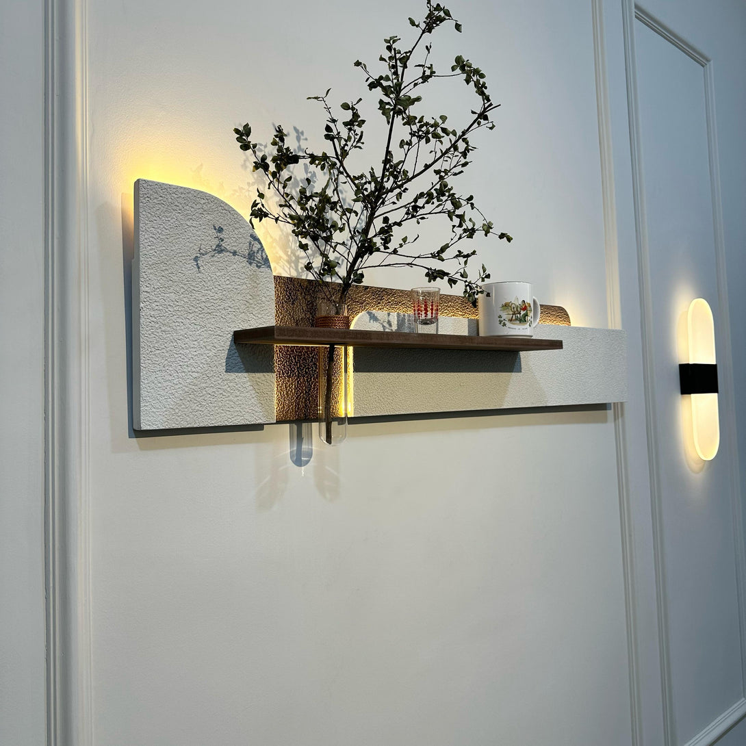 Elevate your living space with our Contemporary Wall Decor, a fusion of modern style and artistic flair. This sleek and sophisticated piece is crafted from high-quality MDF, ensuring durability and longevity. Its unique texture, achieved through a special frosted rock process, adds a touch of exclusivity to its appearance. Enhance your home's ambiance with the included remote-controlled LED lights, which can be powered by an electrical outlet , making it versatile for various settings. Complete the look with an included water bottle for your favorite greenery, adding a touch of nature to your decor. Perfect for any room, this wall decor is not just a piece of art but a statement of your taste and style.
