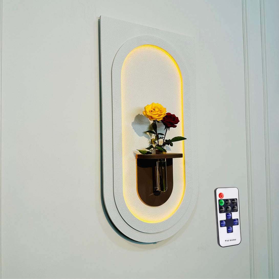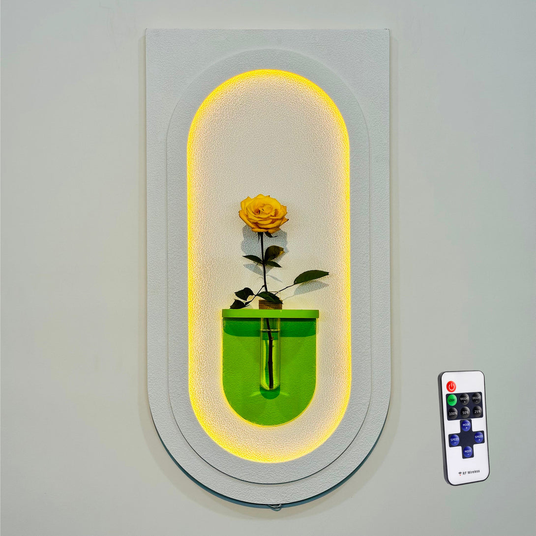 Elevate your living space with our Contemporary Wall Decor, a fusion of modern style and artistic flair. This sleek and sophisticated piece is crafted from high-quality MDF, ensuring durability and longevity. Its unique texture, achieved through a special frosted rock process, adds a touch of exclusivity to its appearance. Enhance your home's ambiance with the included remote-controlled LED lights, which can be powered by an electrical outlet , making it versatile for various settings. Complete the look with an included water bottle for your favorite greenery, adding a touch of nature to your decor. Perfect for any room, this wall decor is not just a piece of art but a statement of your taste and style.